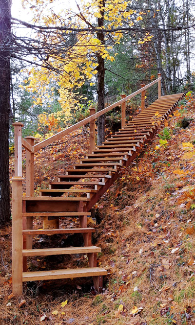 Dwayne and Jen, of Elements of Muskoka, are consummate professionals in every way. They provide excellent communication throughout, from initial contact to on the job. Design ideas are outstanding as they worked with our topography to produce stunning results, perfect for our rustic style. Their work is exceptionally thorough with superb craftsmanship and rock-solid results. Our steps, landings and railings feel as if they have always been there as they perfectly blend in with the landscape. The job site was left in immaculate condition both during and after completion. Dwayne and Jen are a pleasure to deal with and we most highly recommend them for any of your renovation needs. LS & CS