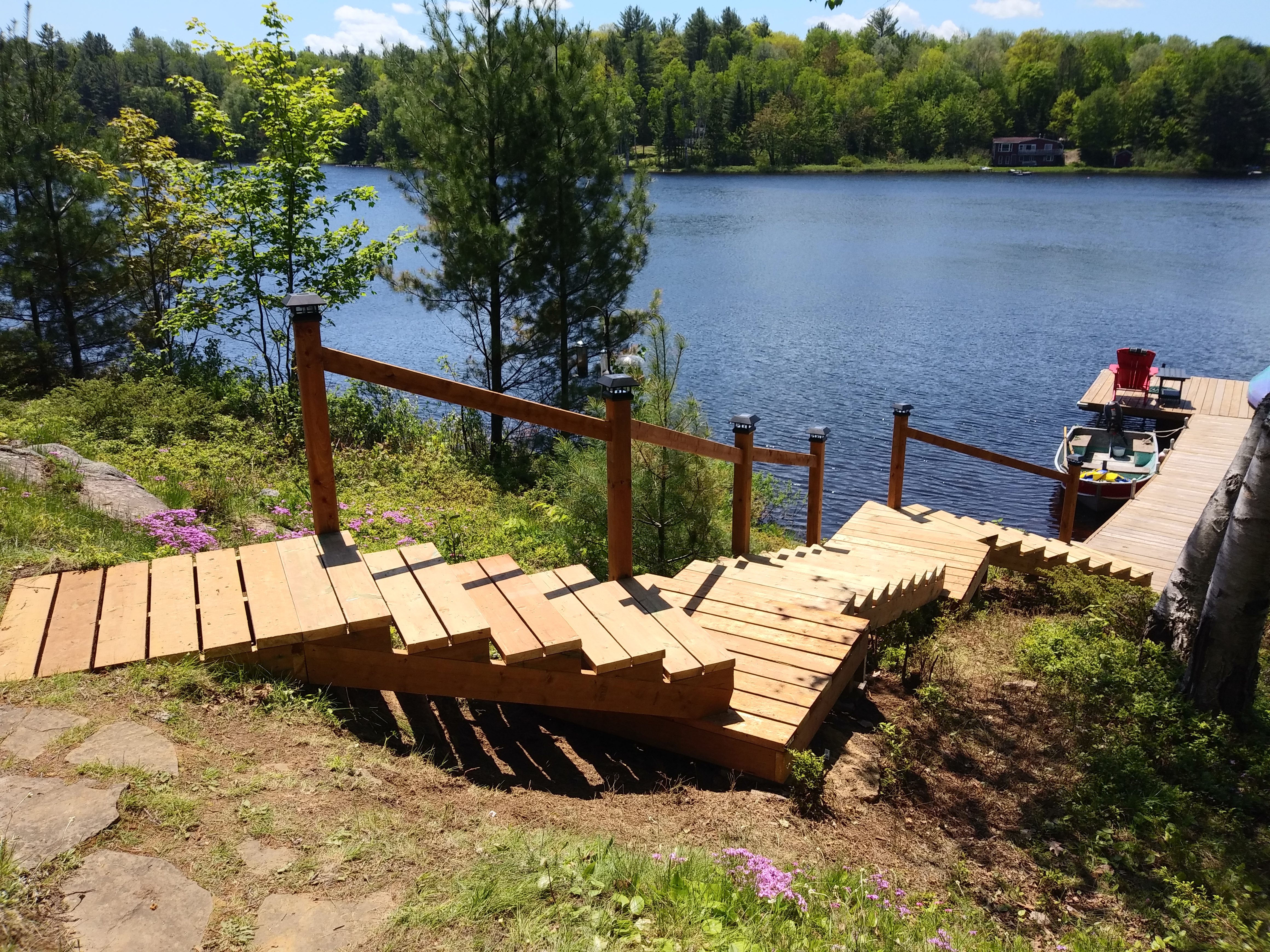 We are proud to offer a variety of services including deck construction, floating dock construction, custom outdoor stairs and forest walkways, Muskoka Room, gazebo and shed construction.