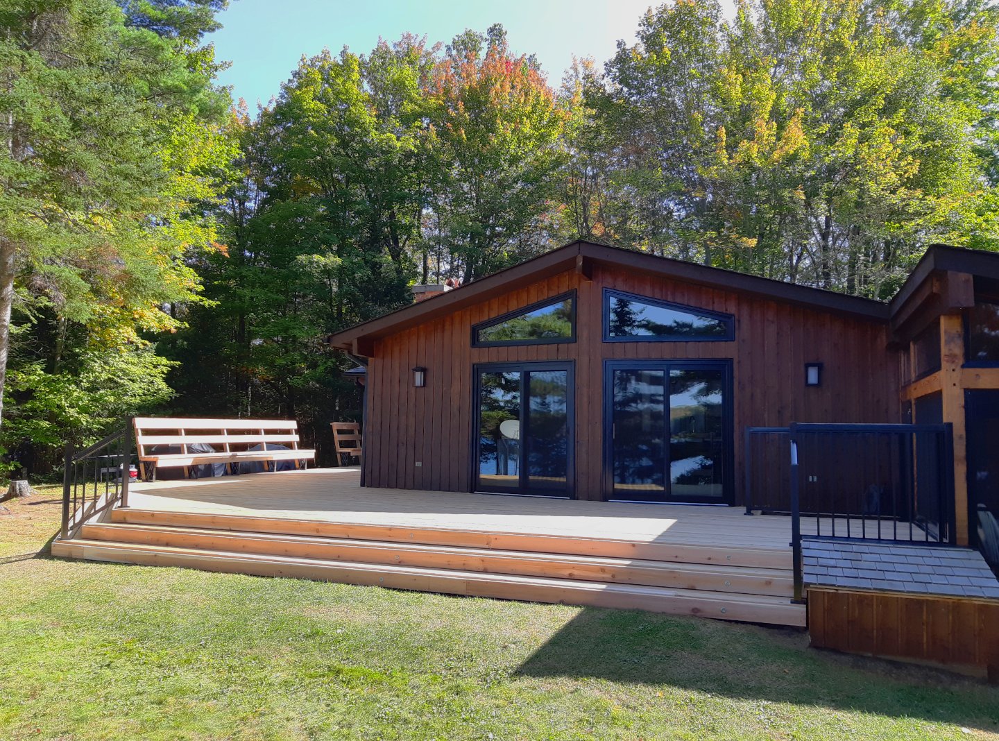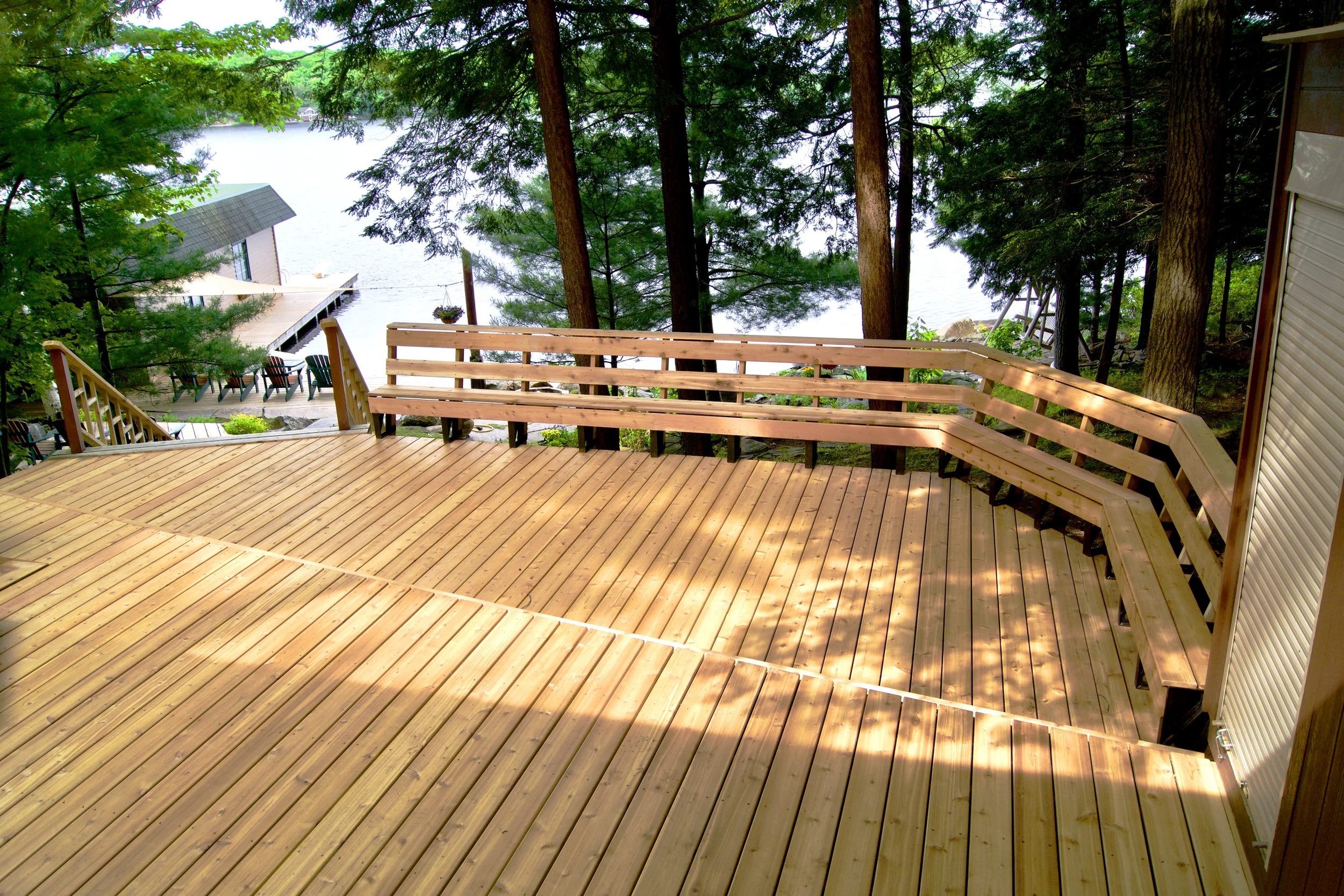 A new cedar deck on a wooden cottage