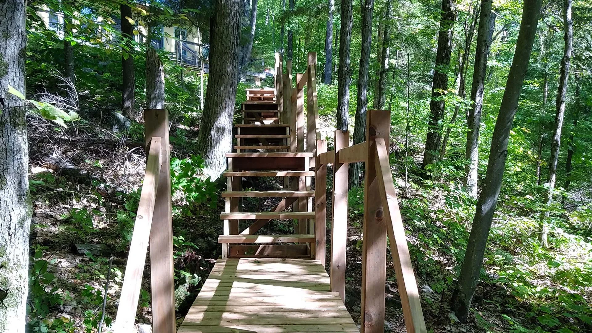 A set of outdoor stairs leading to a dock